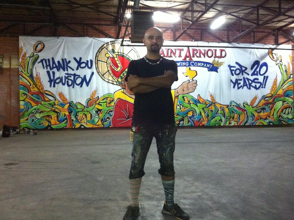 B0ki8DHCMAARL12.jpgHOUSTON, October 27, 2014 – Like a lot of graffiti artists growing up, Mario Enrique Figueroa, Jr., aka GONZO247, used to look for high traffic areas that would attract attention, show off his skills and get people talking. Being given a major billboard as a canvas for his work was unthinkable. Nearly 25 years later, he is realizing a dream – seeing a billboard he created from scratch for Saint Arnold Brewing Co., the oldest craft brewery in Texas, installed overlooking Interstate 10.
